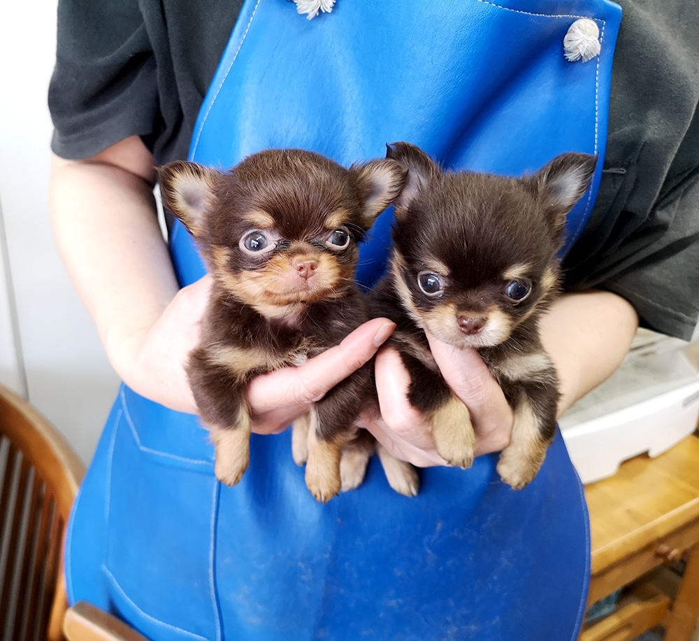 (性別)男の子(2匹とも) (誕生日)2025年8月 (毛色)チョコタン (両親) (価格)ご相談にのります