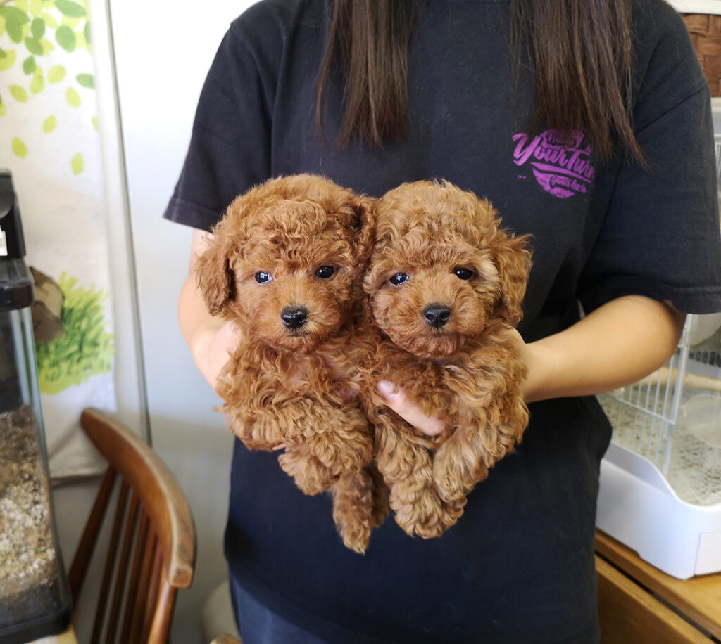 (性別)女の子(両方) (誕生日)2025年9月 (毛色)レッドフォーン(左)・アプリコット(右) (両親) (価格)ご相談にのります